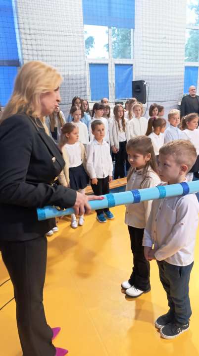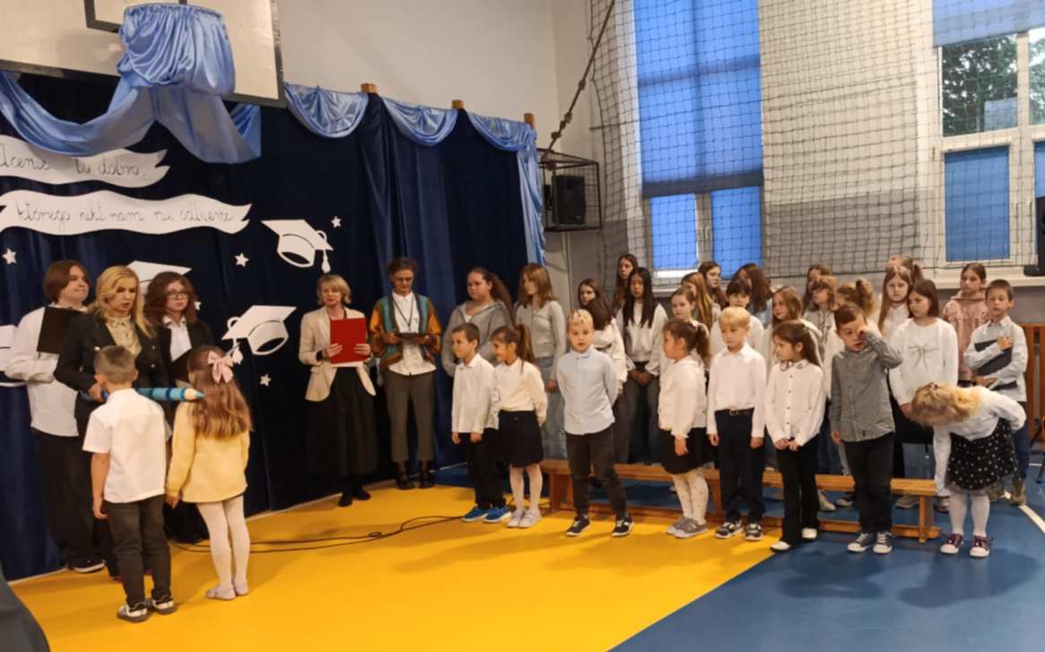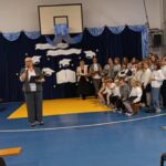i emerytowanych nauczycieli, pracowników administracji i obsługi oraz uczniów i ich rodziców. Po wprowadzeniu pocztu sztandarowego i odśpiewaniu hymnu państwowego, pierwszoklasiści złożyli ślubowanie i zostali oficjalnie przyjęci
