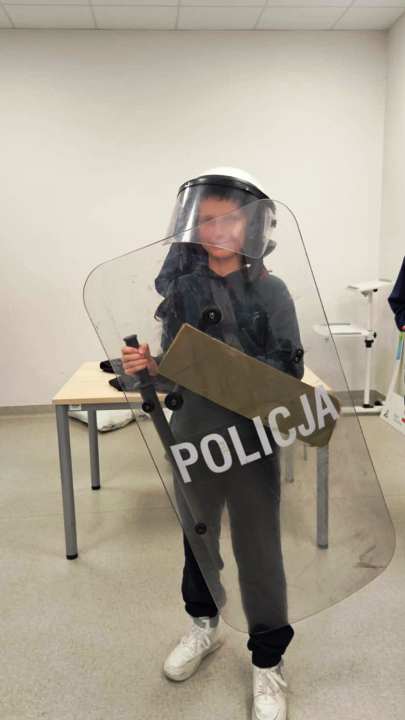 i przymierzyć sprzęt oraz elementy wyposażenia, które policjanci wykorzystują w swojej pracy. Ponadto trzecioklasiści mieli okazję doświadczyć, jak wygląda pobieranie odcisków palców. Każdy mógł odbić własny odcisk na specjalnie przygotowanej karcie, którą otrzymali na pamiątkę i zabrali ze sobą do domu.